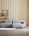 ふんわりした質感とブロック型のデザインが融合するソファ。ソファのラインを沿うように配置されたパイピングにより輪郭が際立ち、ボリュームのあるデザインにスマートな印象を与えています。開放感のある片アームタイプはダイニングとリビングを仕切ることなく、連続性のある空間に演出できます。